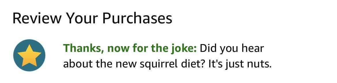 Amazon вознаграждает людей за отзывы шутками. Вспомнил, как на своей первой работе делал для сео-оптимизаторов внутреннюю админку, где некоторые скрипты могли выполняться минут пять. И чтобы ребятам не было скучно, я сделал, чтобы во время загрузки на экране появлялись свежие шутки с баш.орга. В общем, идея рабочая.