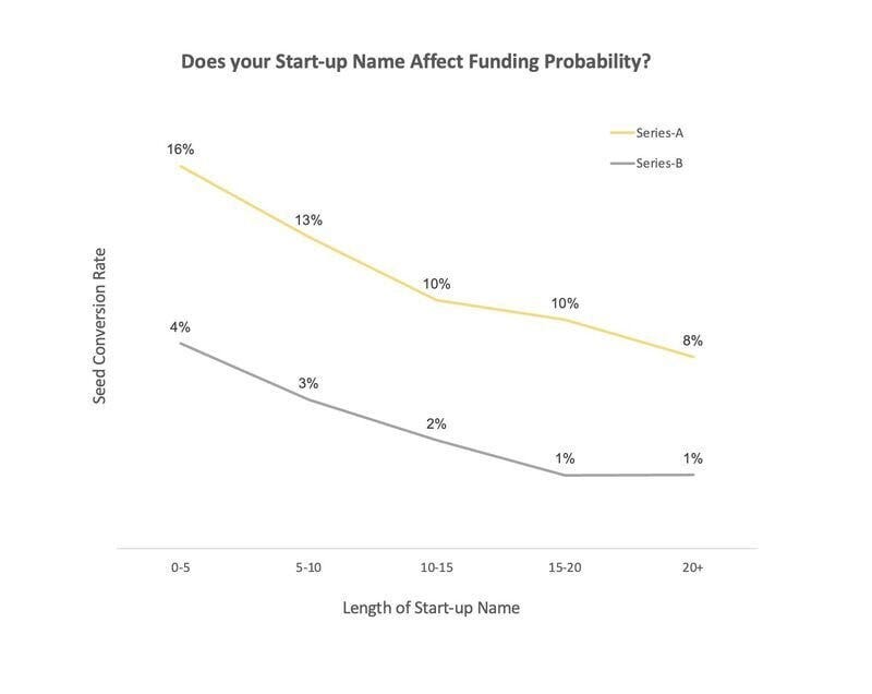 Стартапы с более короткими названиями легче привлекают инвестиции. Мне нравится, что график числа букв в названии начинается с нуля.